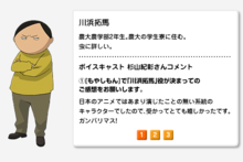 | 川濱拓馬(川浜 拓馬(かわはま たくま)) 聲優: 杉山紀彰 農大農學部二年級生,和美里同寢,對蟲有詳細研究。 | |