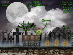 萬聖節快要到了,這個遊戲是通過你的切割操作將這些萬聖節的小怪物全部殺死,快來通過你的智慧試試吧。 遊戲中使用滑鼠進行切割。