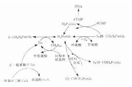 3)參與胺基酸代謝,在甘氨酸與絲氨酸、組氨酸和谷氨酸、同型半胱氨酸與蛋氨酸之間的相互轉化過程中充當一碳單位的載體。