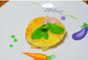 10.把剪好的蘋果圈放上薄荷,再擠上草莓煉乳即可