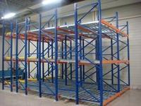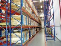 駛入式貨架投資成本相對比較低,適用於橫向尺寸較大,品種較少,數量較多,常用來儲存大批相同類型貨物,由於其存儲密度大對地面空間利用率較高,常用於冷凍庫等存儲空間成本較高的倉庫。,是一種不以通道分割,連續性的整體性貨架,此種貨架適用於存放品種單一,大批量的貨物,倉庫利用率可達到80%左右,是空間利用率最高的貨架,常用於冷庫等儲存空間成本較高的倉庫。在支撐導軌上,托盤按深度方向存放,一個緊接著一個,這使得高密度存儲成為可能。貨物存取從貨架同一側進出,先存後取、後存先取,平衡重及前移式叉車可方便地駛入貨架中間存取貨物。駛入式貨架投資成本相對比較低,適用於橫向尺寸較大,品種較少,數量較多,常用來儲存大批相同類型貨物,由於其存儲密度大對地面空間利用率較高,常用於冷凍庫等存儲空間成本較高的倉庫。橫樑式貨架