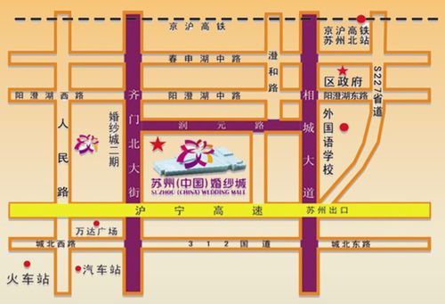 萬達廣場:走312國道向東約1公里看到常熟方向右轉上立交,下立交大約500米就到市場。