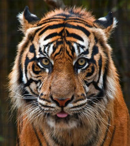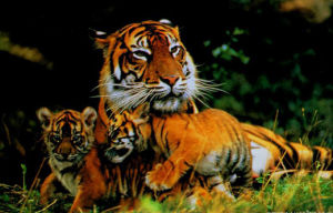 蘇門答臘虎蘇門答臘虎重達450磅(雄性體重100~150kg,雌性體重75~100kg),是體型最小的一種老虎。分布於印度尼西亞的蘇門答臘島。和其他種類的虎比起來,蘇門答臘虎的臉部周圍的頰毛較長,鬍鬚也長,全身鵝黃色,黑色條紋顯著,狹窄且較為纖細密,可使它們藏身於草叢中。由於近年來盜獵猖獗和違法伐木,使得8成以上的雨林棲息地消失,也使得蘇門答臘虎的數量大量銳減。 其中最受到社會關注的是金光集團。金光集團是全球著名的造紙業之一,為了利益,公司大肆破壞熱帶雨林環境。