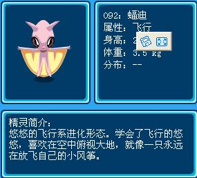 蝠迪由悠悠進化而來(需要20個空氣結晶,20級在進化艙里進化)。飛行系中的佼佼者。有很強的實力,經驗要求遠低於提亞斯,練起來比較輕鬆。