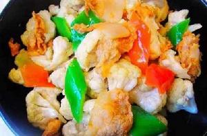 因為之前菜花焯水過,所以炒至的時間不宜太長