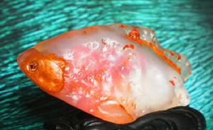 此神奇《血膽魚》又名《血膽金蓮》,為產自內蒙古阿拉善大漠內含“血膽”的天然瑪瑙奇石,日前在大會堂舉辦的國際藝術品展覽會上展出,由於其自然包裹進了含有鐵離子等水溶液而呈現紅色,是水膽瑪瑙的一種特殊形態,在自然界中十分罕見!