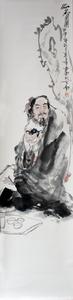 已醜仲春。某日,雨後初晴,與畫家袁赤峰晤於莞,敘舊寒暄之隙,煮水沏茶,談藝論道,心有歡喜。臨別,袁贈光碟,內蘊佳構,高清大圖,總計九幀。是夜,細揣慢勘,會心通神,遂成此稿。《山野勁秋風》,畫面枝柯交錯,余葉可知秋深。三位瑤山男子,神態憨厚可掬,肩挎牛皮腰鼓,頭裹如髻白帕,臉頰喜形於色。其情如行於途?其狀如赴於宴?構圖巧妙,疏密疊錯,橫豎交際,樹掩映了人,人生動了樹,其欣欣之景,流露秋之殷實,引人無盡思索,卻又因人而異,乃至回味無窮。設色古樸敦厚,灑脫大方,濃處莊重,淡處透明,枯濕銜接,自然天成,遵循“隨形賦彩”,卻又透氣參光。竊以為,其用筆大膽,如刀斧劈柴,其墨色酣暢,似棉團汲水。然美玉有瑕,人物表情,稍顯造次,衣飾紋理,略微繁瑣。是故,鑒為:優之良品。