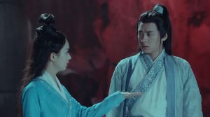 書書看到小環的身邊是金瓶兒和野狗,擔心小環有什麼危險,衝上前去指責了金瓶兒,金瓶兒詳細說明了經過,野狗誤會書書沒有照顧好小環,指責了他。小環替野狗說話惹得書書不滿,轉身離開了,金瓶兒告訴小環曾書書這是關心則亂,要她不要和書書置氣,趕快追上書書。待小環離開後,金瓶兒囑託野狗照顧好張小凡,自己要去殺掉百毒子,不然日後合歡派和錦繡坊的人們永無寧日。青雲弟子行至淺灘前,李洵和燕虹也在此處,雪琪要等書書驚羽回來,因為青雲子弟要行動一致。燕虹本想先走,卻被李洵拉住了,李洵想借雪琪等人的法力順利找到天帝寶庫。燕虹往淺灘處洗手,卻發現自己手顏色開始變化,兩隻手都開始畸變,頭痛欲裂,李洵也被異木纏身。雪琪出劍相救,秦無炎現身,眼看著李洵和燕虹生不如死。書書和雪琪意欲一劍刺向秦無炎,張小凡現身用噬血珠擋住了雪琪的劍,雪琪和書書震驚了。書書沖小凡大吼,質問他為什麼要救秦無炎,因為張小凡很清楚,秦無炎是害死了曾書書外公的人。