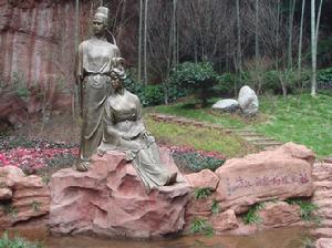 “伏羲氏畫八卦”時即已光昭日月而巍然屹立了。明人熊相《中岩記》稱:“岩覆如屋,泉出岩這東西,兩石龍吞吐之。噴若濺珠,殊可愛。”《蜀中名勝記》(卷十二)又稱:“岩之半,為流杯池,一曰太極池”。其形制按《易》學“太極圖”鑿造而成。宋代大文學家黃山谷(又名庭堅)當年客居青神3個月,曾屢被邀游中岩,每於玉泉岩汲水瀹茗,賞景抒懷,並自況行呤《玉泉銘》,筆走刊石以紀勝。之後,歷代文人雅士慕而效仿,相約來此煮茗行樂,逐步發展成為以“太極池”流杯吟詠,抒懷言志,勒石留念,蔚然成風,故岩間碑林叢立,琳琅滿目。今碑刻大多散失。但“玉泉”依舊,“太極池”尚存,依然中岩一大景觀。慈姥風光