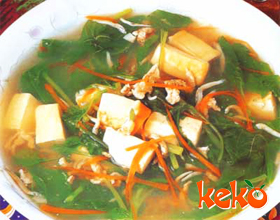 此羹湯飄逸著芝麻香的中華料理羹湯。 木棉豆腐可用豆腐代替。