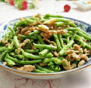 肉絲炒豇豆是以豇豆(長豆角)、豬肉為主料,配以大蒜、辣椒等輔料炒制而成的一道鹹鮮味美食。醬香味濃,鹹鮮宜人。