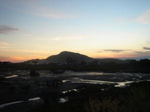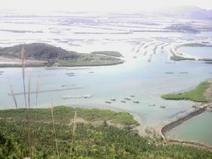 海灣對面,與獅子嶺遙相對峙的是龍高山、黃草嶺。透過嶺隙,依稀可以望見遠近聞名的閘坡和溪頭鎮的白土圩。近處,離獅子嶺百餘米的海面上,匐伏著一個數畝大小的龜形小島,那便是遊人必登的龜山島了。小島上綠樹成蔭,奇石滿目,是燒烤海鮮的最佳場所。龜山島的尾部,連線著一條數百米長的帶形海灘。此海灘漲潮時隱去,退潮時復現。擊浪聲、嘻笑聲、歌聲混和著海浪對海灘的撲擊聲,奏出了太平盛世的交響曲;鹹水、海灘、機船組成了令人神往的“鬧海圖”。