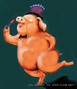 豬塗口紅,Putting lipstick on a pig。意指為了欺騙或者誘惑他人而把某件事物粉飾得更有吸引力,但實際上是換湯不換藥,類似“別以為穿了馬甲,我就不認得你”。在美國總統候選人的用法中是指某項政策、措施、行動,並不能改變事情的本質,甚至更為糟糕。