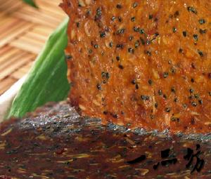 豬肉紙2工藝流程為:新鮮原料肉的選擇→處理→配料→煮燒→擠壓→成熟→包裝和貯存。