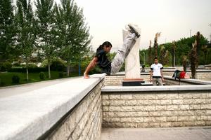 2.力量是不可或缺的東西,可以說,力量跟不上的話,永遠只能停留在某個台階而不能進步。肩部、臂部、背部、腹部,還有下肢的力量,要全面練習。3.彈跳不是一定必需的素質,但對跑酷有很大幫助。