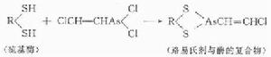 二巰基類化合物是含砷毒物的特效抗毒劑,與路易氏劑中的三價砷直接結合,形成無毒的五環複合物,從而保護酶活性;此外,還可奪取中毒酶中的砷,恢復酶活性。