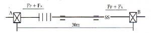 例:一碳鋼管路,公稱通徑500mm,工作壓力0.6MPa;介質溫度350°C ,環境最低溫度-10°C,安裝溫度為20°C,管線長如圖,疲勞破壞次數要求3000次。要安裝一外壓補償器,試計算補償器對支座的作用力。