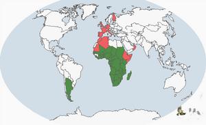 分布於非洲中南部地區(包括阿拉伯半島的南部、撒哈拉沙漠(北回歸線)以南的整個非洲大陸。