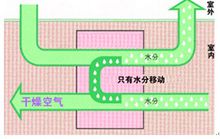 吸收了水分的轉輪移動到再生區,這時從逆方向送入的再生用空氣(溫風)將驅除水分,使轉輪繼續工作。