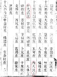 據清朝雍正年間《開化縣誌》記載,十七都有“大澳”、“小澳”兩個村莊,均指本村;據清朝乾隆年間《開化縣誌》記載,十七都有“內大沃莊”、“外大沃莊”兩個村莊,也均指本村;據清朝光緒年間的《開化縣誌》記載,當時雲台鄉十七都設有栗江等24村,其中有兩村莊名為“大沃”、“大澳”,即本村也。可見,清朝時期,本村的官方名稱為:大沃或大澳,大沃使用得更加廣泛!