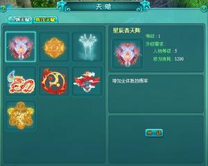 陣法天賦:升級後可增加上陣人數和陣法附帶屬性,有星辰青天陣、