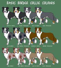 邊境牧羊犬常見的毛色有黑白兩色、藍白兩色和棕白兩色,此外還有以黑、藍、棕為主色的三色毛,以及藍隕色和紅隕色等。大部分人認為邊牧只有黑白兩色,只是因為這種顏色最常見。