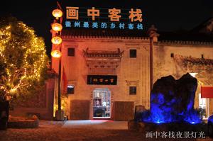 客棧位於黃岳畫院的後院中,有大、中、小院落三個。其中庭院落為古徽州300年的農家原生態庭院。有殘牆古門、老柿樹、老棗樹、羅漢鬆散布其中。老牆的斑駁留給人對古時生活的無限暢想。客棧的牆面上掛著風格多樣的各種裝