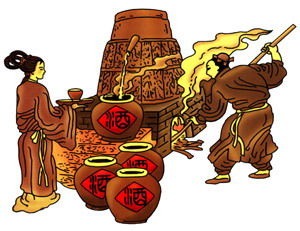 早初酒應當是果酒和米酒。自夏之後,經商周、歷秦漢,以至於唐宋、皆是以果實糧食蒸煮,加曲發酵,壓榨而後才出酒的,無論是吳姬壓酒勸客嘗,還是武松大碗豪飲景陽崗,喝的就是果酒或米酒,隨著人類的進一步發展,釀酒工藝也得到了進一步改進,由原來的蒸煮、曲酵、壓榨、改而為蒸煮、曲酵、餾、最大的突破就是對酒精的提純。數千年來,中國的釀酒事業,在歷史的變遷中,分支分流以至於釀造出了許多更具有地方特色,更能反應當地風土人情的各類名酒,不同地域和不同民族的酒禮酒俗,無不構造出一個博大的淵深的名酒古國。