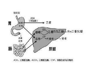 三、決定“醉酒”的幾個因素,日常飲用的各類酒,都含有不同量的酒精,酒精的化學名是乙醇。酒中的乙醇含量越高,吸收越快,越易醉人。啤酒含酒精3%~5%;黃酒含酒精16%~20%;果酒含酒精16%~28%;葡萄酒含酒精18%~23%;白酒含酒精40%~65%;低度白酒也含酒精24%~38%。飲酒後,乙醇在消化道中被吸收入血,空腹飲酒則吸收更快。血中的乙醇由肝臟來解毒,先是在醇脫氫酶作用下轉化為乙醛,又在醛脫氫酶作用下轉化為乙酸,乙酸再進一步分解為水和二氧化碳。全過程約需2~4個小時。有人報導成人的肝臟每小時約能分解10毫升乙醇,大量飲酒,超過機體的解毒極限就會引起中毒。會飲酒與不會飲酒(即酒量大小)的人,中毒量相差十分懸殊,中毒程度、症狀也有很大的個體差異。一般而論,成人的乙醇中毒量為75~80毫升/次,致死量為250~500毫升/次,幼兒25毫升/次亦有可能致死。
