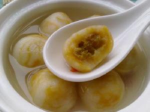 酸甜琉璃珠是一款酸甜口味的湯圓,傳統的湯圓裡面的餡是芝麻花生,酸甜琉璃珠的餡是葡萄乾,吃來酸酸甜甜,十分可口。