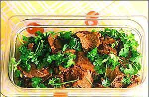 【原料】芫荽(香菜),1000克;黃豆,150克;精鹽,20;