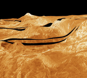 瑪亞特山,金星上最大的火山之一,比周圍地區高出9000米,寬200千米,火山及火山活動金星表面為數很多。至少85%的金星表面覆蓋著火山岩除了幾百個大型火山外,在金星表面還零星分布著100,000多座小型火山從火山中噴出的熔岩流產生了了長長的溝渠,範圍大至幾百公里,其中最長的一條超過7000公里。
