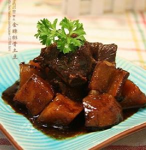 滷製排骨時不能太爛,藥料口味不能過重,否則會遮蓋排骨本身的香味。土豆要燒至入味酥爛。