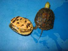 金頭閉殼龜金頭閉殼龜背甲較隆起而脊部較平,脊棱明顯。頭部金黃色,頭側略帶黃褐色,具三條黑線紋。體背黑褐色,盾片相接處色深。第二至第四、五枚椎盾棕紅色;腹甲黃色,左右盾片均有基本對稱的大黑斑。腹甲前葉及肛、股盾處黑斑尤為明顯。前葉的五塊大黑斑組成梅花形,或在肱、胸盾縫上的黑斑連成寬橫帶。腹甲後端微缺,其前、後葉及背、腹甲均以韌帶相連,腹甲前後可向上關閉背甲。