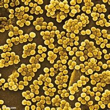 金黃色葡萄球菌新出現的耐甲氧西林金黃色葡萄球菌,被稱作超級細菌,幾乎能抵抗人類所有的藥物,但是萬古黴素可以對付它。典型的金黃色葡萄球菌為球型,直徑0.8μm左右,顯微鏡下排列成葡萄串狀。金黃色葡萄球菌無芽胞、鞭毛,大多數無莢膜,革蘭氏染色陽性。金黃色葡萄球菌營養要求不高,在普通培養基上生長良好,需氧或兼性厭氧,最適生長溫度37°C,最適金黃色葡萄球菌普通培養基培養特點生長pH7.4,乾燥環境下可存活數周。平板上菌落厚、有光澤、圓形凸起,直徑0.5~1.0mm。血平板菌落周圍形成透明的溶血環。金黃色葡萄球菌有高度的耐鹽性,可在10~15%NaCl肉湯中生長。可分解葡萄糖、麥芽糖、乳糖、蔗糖,產酸不產氣。甲基紅反應陽性,VP反應弱陽性。許多菌株可分解精氨酸,水解尿素,還原硝酸鹽,液化明膠。金黃色葡萄球菌具有較強的抵抗力,對磺胺類藥物、青黴素、紅黴素、土黴素、新黴素等抗生素敏感,但易產生耐藥性,原因是由於這些菌株產生青黴素酶等。對鹼性染料敏感,十萬分之一的龍膽紫液即可抑制生長。