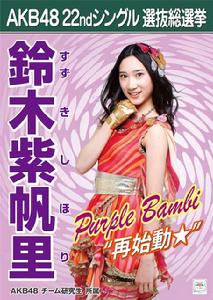 2011年4月24日的公演(11期再加入後101回目的公演)自我介紹改變為「想成為支持劇場的第三根支柱,我是暱稱SHIHORIN的鈴木紫帆里!」(はい! シアターを支柱る3本目の柱になりたい、しほりんこと鈴木紫帆里です。よろしくお願いします)