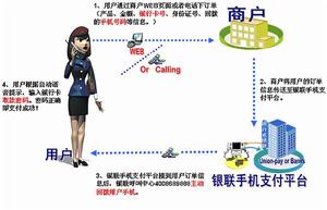 銀聯手機支付是一種安全、便捷的新型支付平台。能夠提供給用戶計算機(WEB)、電話(IVR、WAP、SMS)、櫃檯(面對面)等多種途徑進行支付,通過行動電話進行實時信息互動確認完成支付,確保用戶支付的安全。