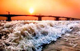 錢塘潮風勢:沿海一帶常刮東南風,風向與潮水方向大體一致,助長了潮勢。