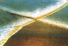 錢塘潮(又名十字潮)在海寧市丁橋鎮,距杭州灣55千米有一個叫大缺口的地方是觀看十字交叉潮的絕佳地點。由於長期的泥沙淤積,在江中形成一個沙洲,將從杭州灣傳來的潮波分成兩股,即東潮和南潮,兩股潮頭在繞過沙洲後,就像兩兄弟一樣交叉相抱,形成變化多端、異常壯觀的交叉潮,呈現出“海面雷霆聚,江心瀑布橫”的壯觀景象。兩股潮在相碰的瞬間,激起一股水柱,高達數丈,浪花飛濺,驚心動魄。待到水柱落回江面,兩股潮頭已經呈十字形展現於江面上,並迅速向西賓士。同時交叉點像雪崩似的迅速朝北轉移,撞在順直的海塘上,激起一團巨大的水花,跌落在塘頂上。
