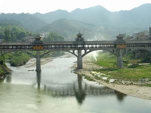 風雨橋,都是以杉木為主要建築材料,整座建築不用一釘一鉚,全系木料鑿榫銜接,橫穿豎插。棚頂都蓋有堅硬嚴實的瓦片,凡外露的木質表面都塗有防腐桐油,所以這一座座龐大的建築物,橫跨溪河,傲立蒼穹,久經風雨,仍然堅不可摧。 這些興時於漢末至唐代的古建築,結構嚴謹,造型獨特,極富民族氣質。