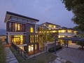 杭州·天鵝山項目位於杭州市淳安縣千島湖鎮,用地地塊臨千島湖,處於杭千高速公路千島湖出口處,被高爾夫球道環繞。居住環境十分理想。因地制宜,保留有利的坡向和山體,弱化不利坡向,稍為修整形成朝湖面方向跌級的台地,保留對原始地形的記憶 ,結合自然地形特點,營造東方韻味,以簡潔平和的手法,組合穿插,利用天然石材、磚、木材及鋼材與玻璃,充分表達材料本身特性,形成輕盈舒展的造型特徵,以百葉、隔牆等構件為低層高密度住宅間提供必要的阻隔,同時也增加立面的層次感。以深挑檐造成較深的陰影,豐富立面的進退關係。色彩以材料本色為基調;白、灰、木色、金屬灰色為主調;以天然、質樸、現代的造型特徵,來詮釋山居大宅的身份特色。