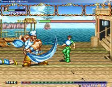 第三關:關口看似很強..(因為人多.一人玩是2人!多人玩是3人)其實不然!這關是有規律的!!!!就拿一人玩來說吧!因為多人玩過這關就更簡單了!當到達關口時他們2人會從瓶子中跳出.而且還有一段時間要變身..這時你站到其中一人的身邊(就是能抓住他的地方)!等關口能動時你也就抓住了一人.這時你就把這人直接往到另一人身上仍就行了...這時兩人都倒了過去狠打他們PP吧!!!(這關與別關不同點就是他們被打倒後不直接站起來而是要爬到離你遠的地方再站起來)過這關的關鍵就在這了!當他們爬時你要看清走向跟住他們當一人站起時你要正好在他身邊能正好抓住他.這時你就能把他當武器了!朝另一人仍去吧(就象一開始一樣)....喔?又是以次循環直到打死他們!!!!過這關時有時並不一帆風順玩家要隨機應變啊!實在不行時別吝惜保險(A+B)