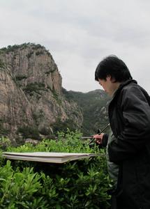 十田的創作始終在繼承好傳統再尋求創新的理念支撐下進行的。他很注重對傳統經典繪畫的借鑑與吸收。王蒙、倪贊、弘仁、石濤、髡殘等等藝術家他都經過細緻的研究。從實臨到意臨,由局部至整體,不斷的從中吸取養料,然後轉化為符合自己審美需求的筆墨線條。在他最近創作的一批作品中,能夠充分的體現他對傳統筆墨的重視深度。山水的意境多受倪瓚、弘仁的影響,筆墨簡潔、線條蒼茫、內涵深厚。古人云:刪繁就簡三秋樹,領異標新二月花。棄繁為簡,變滿為空,這是一種認識的升華,也是一個艱苦的過程。倪瓚、八大的畫都非常的簡,但畫上的每一筆都是作品中的重要元素,缺一筆嫌少,加一筆則多。更重要的是,每一筆都能傳達作者的思想感情,表現對人生的理解與感悟。十田從四川到新疆再輾轉定居於北京,特別是十幾年的軍旅生活的磨練,豐富了他的人生閱歷,這對他的藝術之路具有十分重要的意義。在深入的學習借鑑古人之後,再回到自然的懷抱,到名山大川中去感受生活、體驗人生,不斷的積澱創作素材,使作品既尊重傳統,又符合當代的審美特徵。