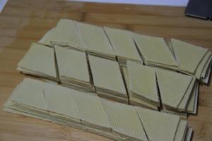 1.乾豆腐用開水過一下(祛豆腥味),切成菱形片或者條,備用。 | ![]() |