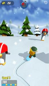 在這款作品還未正式推出的時候,流出來的訊息報導說遊戲採用的是重力感應的操作模式,但當興致勃勃地打開遊戲之後,新手教程居然告訴我要通過滑動螢幕來控制老頭兒左右移動!這不是坑爹嗎?所以說小道訊息真不能隨意相信呀。當老爺爺在雪地里飛奔的時候大家要儘量讓他撞到所有的目標障礙物,這樣才能完美通關並且獲得金幣喔。每個關卡需要撞翻的物品都不一樣,有些是冰凍的企鵝,有些是裝滿水果蔬菜的木箱,就朝著這些障礙物奮力地衝去吧!