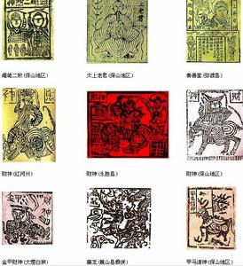 招財進寶 (昆明)大理某些地方以前製作這類行當的"行話"稱紙馬是"紙馬板板",而不稱"甲馬"。滇東北七月