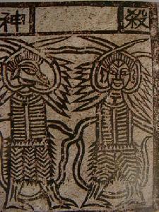 傳承雲南的宗教版畫尚有相當數量的遺存,其中以佛經版畫最顯著,何以佛教的版畫得以保存,是因為佛經有眾多的寺廟保存,一般每一部佛經的痱頁上都有一幀佛教內容的版畫,如果都把它們集中起來會有多少!筆者曾在一位收藏家那裡見到數百餘幀未經發表出版的雲南明清以來的佛經版畫原作,可見其浩然大觀。形成中國版畫史的開始就是佛經版畫,之後佛經版畫便不絕於歷代版畫史,而紙馬版畫的發展史就像中國版畫史之外的一部野史,歷代至現代都末曾把紙馬作為版畫藝術的一種歸入美術史,這與中國傳統的文化價值觀念有關,凡屬世俗民間實用性質的美術歷來不被看重。年、門畫屬典型的民