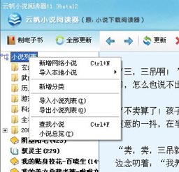 對章節欄進行操作的時候,可以使用右鍵選單(大部分功能和上面閱讀界面的下拉選單相同),更加便捷:
