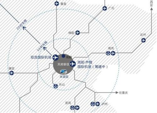 航空:30分鐘內可連線兩大國際機場(雙流機場及成都第二國際機場),目前140餘條國際、國內航線,通達國際國內50多個大中城市;