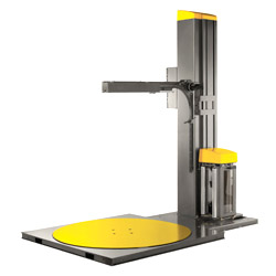 電動托盤纏繞機的纏繞在托盤的頂部開始和結束, 這個唯一不同的貼住和切斷的方法有以下優點:
